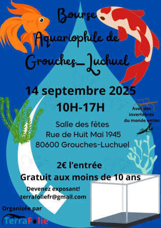 À 30km d'Amiens et d'Arras, la bourse aquariophile de Grouches-Luchuel est le nouveau rendez-vous des passionnés d'aquariophilie ( et même un peu de terrario ).