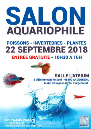 L’ association AVOBACS organise un salon/bourse aquariophile le Samedi 22 Septembre 2018 de 10h30 à 16h00 dans la nouvelle salle l’ATRIUM (salle de 500 m2)