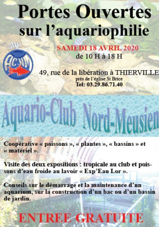 Comme chaque année, l'aquario-club Nord Meusien est heureux de vous inviter à sa porte-ouverte annuelle.
