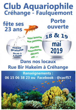 Le club fête ses 23 ans et pour cette occasion nous organisons une porte ouverte et une mini bourse aux poissons, plantes, et décor.