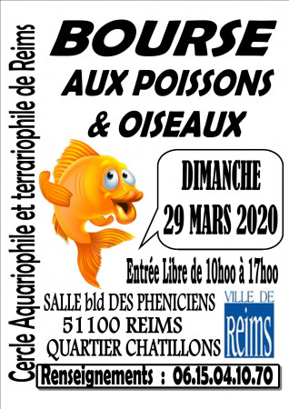 Le Dimanche 29 Mars 2020, le Cercle Aquariophile et Terrariophile de Reims organise sa 75ème Bourse aux poissons, plantes et oiseaux. Un grand choix de poissons, oiseaux ou matériels seront proposés à tous nos visiteurs. De nombreux éleveurs amateurs venus de plusieurs régions nous présenterons leurs reproductions ainsi qu’un large choix de plantes aquatiques. Tout les passionnés de poissons, oiseaux trouverons un large choix d’espèces adaptées à chacun. Alors venez très nombreux pour une nouvelle réussite.