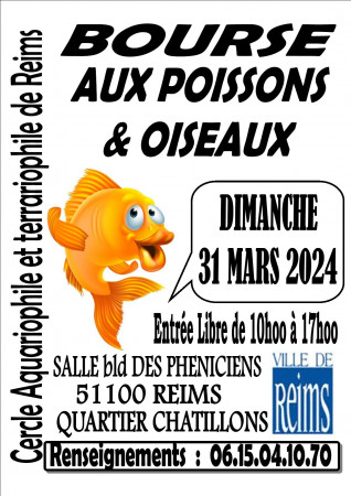 Le Dimanche 31 Mars 2024, le Cercle Aquariophile et Terrariophile de Reims organise sa 80ème Bourse aux poissons, plantes et oiseaux. De nombreux éleveurs amateurs venus de plusieurs régions nous présenterons leurs reproductions ainsi qu’un large choix de plantes aquatiques. Les passionnés de poissons, oiseaux trouverons un large choix d’espèces pour satisfaire tout vos souhaits. Alors venez très nombreux pour ces retrouvailles entre passionnés.