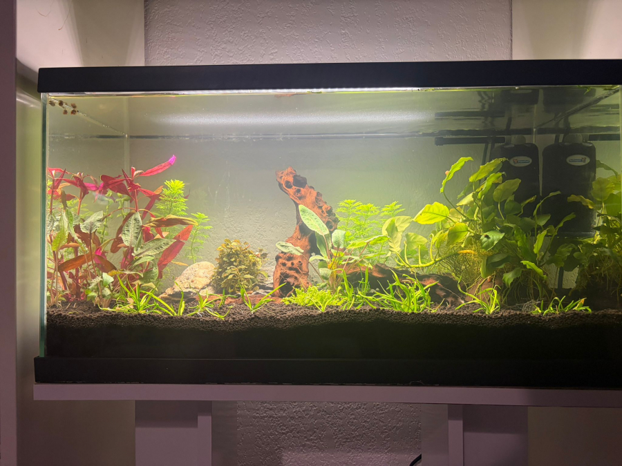 J'ai mis mon bac de 54l en eau dimanche. Sol ( technique je crois) aqua growth soil. Eau du robinet.