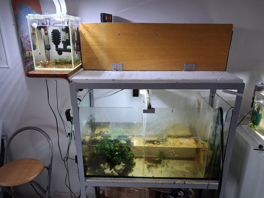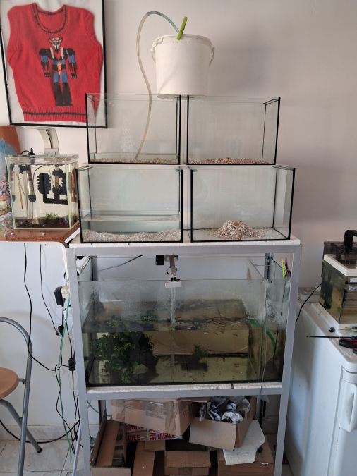Aquariums installés sur la longueur pour avoir une nouvelle vision des crevettes.