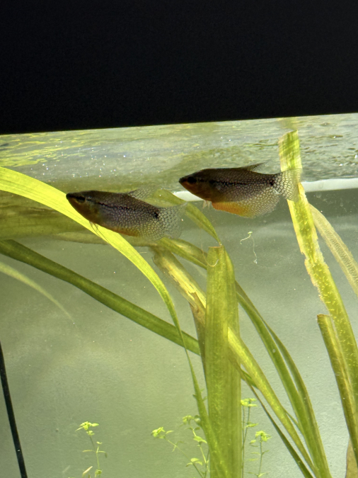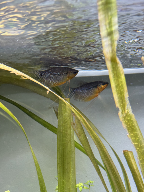 Bonjour, j’ai acheter des gourami perlé 2 F, 1M et je pense bien que le vendeur m’a menti. Voilà une photo le vendeur m’indique que c’est un mâle et une femelle même après lui avoir dis que je trouvais ça bizarre sauf que maintenant après plusieurs jours , ils ont retrouver leur couleur et il ce chamaille beaucoup ce qui me laisse aucun doute. La femelle ne sort même plus ce sont troue elle a l’... Afficher la suite
