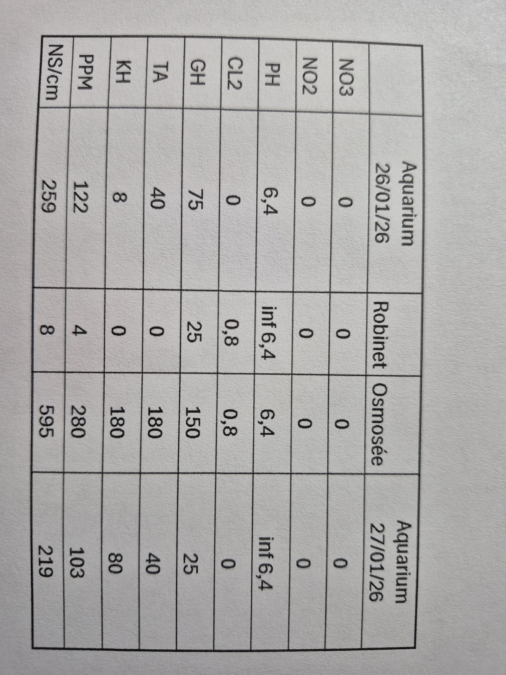 Bonjour, j'ai mis mes dernières mesures. J'ai un testeur électronique qui me donne : 117 ppm et 246 micro s / cm ça correspond à quoi ? Ces données sont-elles bonnes pour des Ramirezi ? Merci