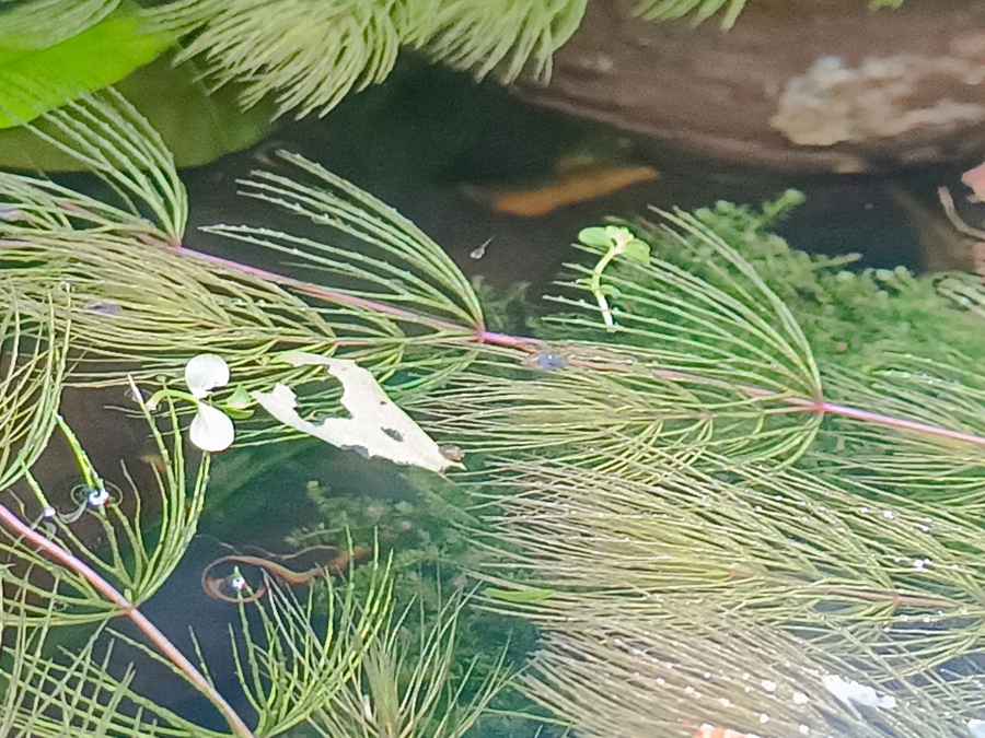 En observant la petite jungle, plutôt à la recherche de bébés crevettes, j'ai découvert trois petites virgules aux yeux bleus. Les pseudomugil luminatus sont là depuis moins de trois semaines, et je n'ai pu en avoir que 4 alors qu'ils vivent habituellement en banc (réappro imminente), mais visiblement, ça va quand même.
