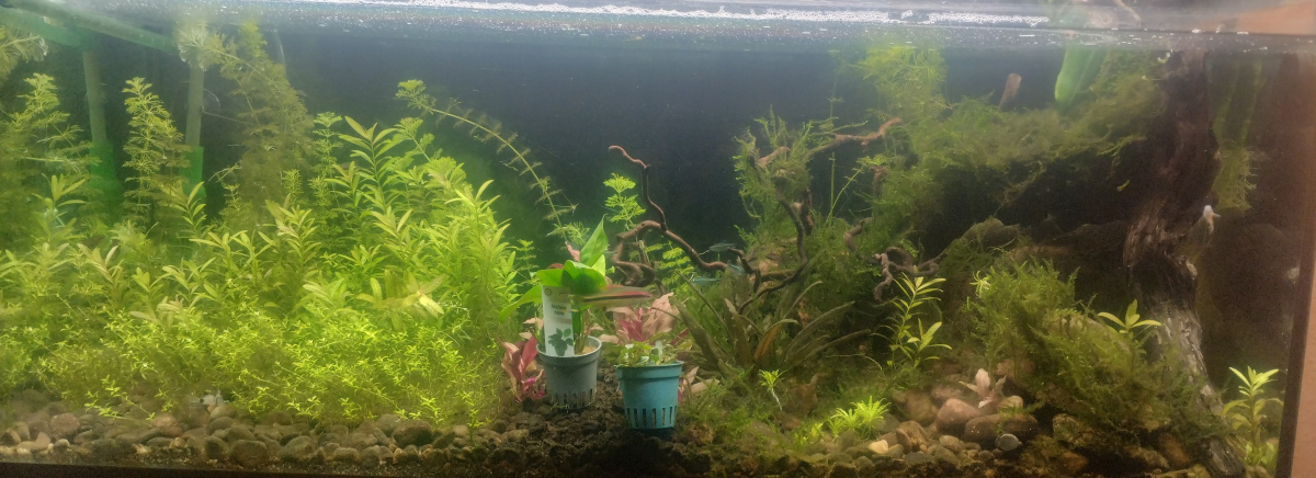 Les 10 premiers centimètres depuis le sol vers le haut du bac sont touffus, bon c'est idéal comme cachette pour les poissons mais esthétiquement