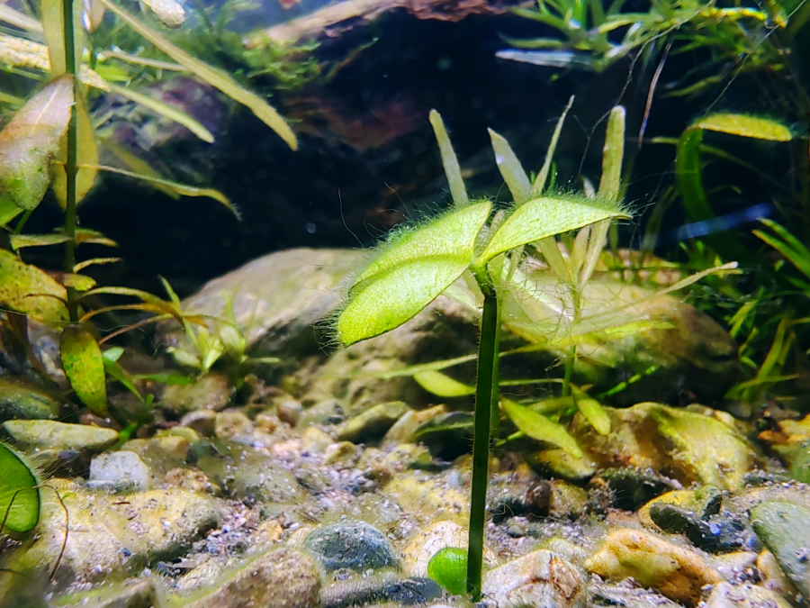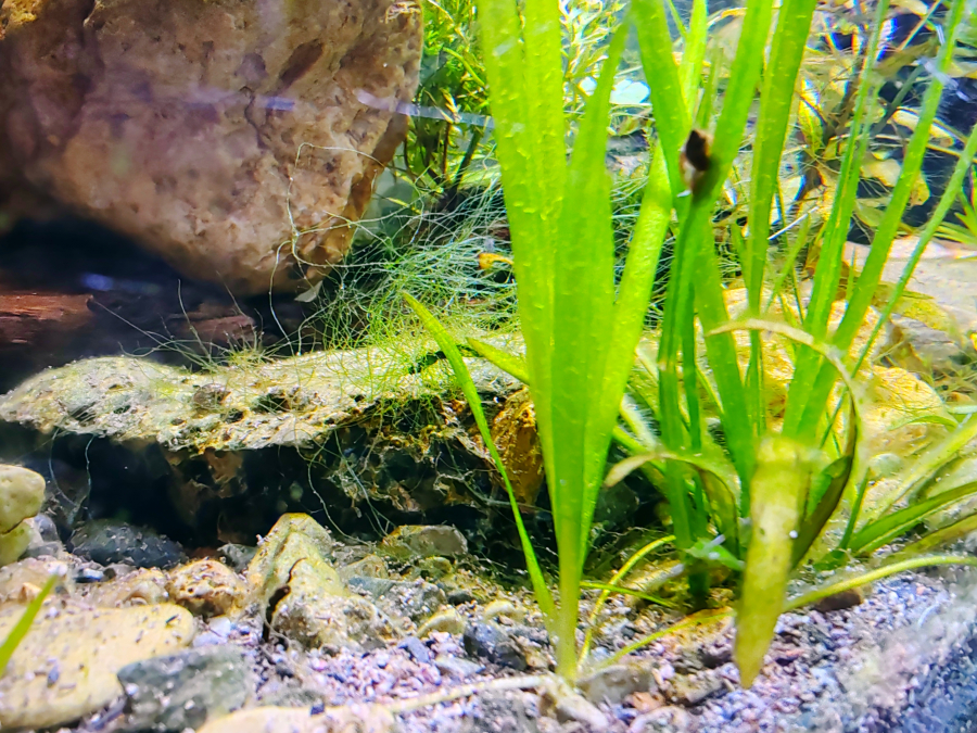 J'ai ça qui pousse sur mes plantes de l'avant de l'aquarium vers le milieu seulement.