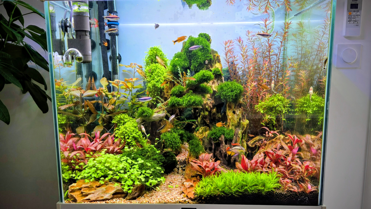 Rotala 'Blood Red' & Alternanthera reineckii 'Mini' : Elles ont eu droit à une petite taille pour maintenir un beau buisson compact.