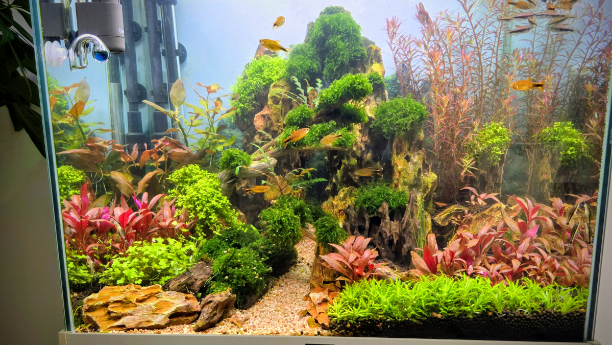 Micranthemum 'Monte Carlo' : Le tapis s'installe enfin sur les Ohko Stones, le rendu commence vraim... Afficher la suite