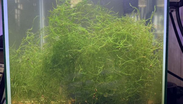 filtre , chauffage et lumière coupés mais toujours en eau. il est envahi par la mousse de Java qui est en pleine forme