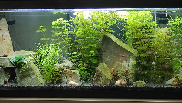Population 1 ancistrus gold, 5 corydoras albinos, 10 rasboras arlequin, 7 bentosi, 7 neritinas et 30 neocaridinas rili carbon