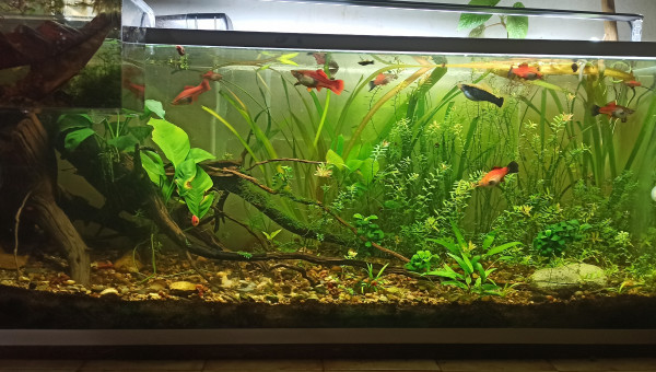 Xiphophorus hellerii et crevettes neocaridina (blue velvet)