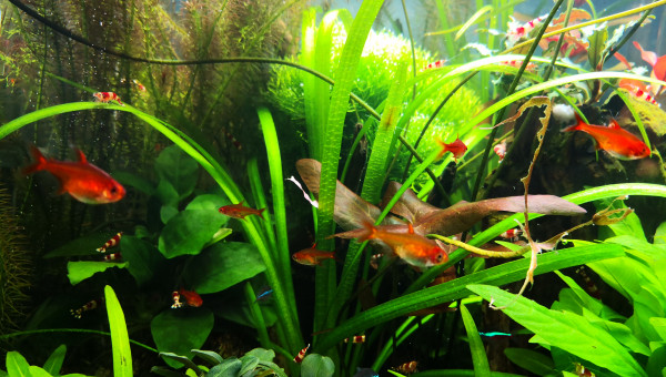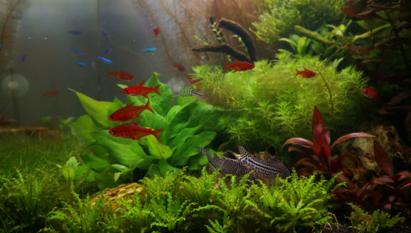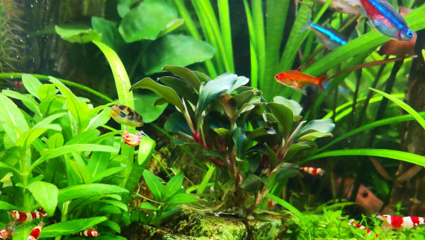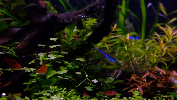 Voici des news de mon bac, 1 an aprés tout va bien ?. Je dirais même que j'arrive enfin à avoir un bac mature et stable. J'ai quelques algues pinceaux sur ma racine, ma canne de rejet et sur certaines bucephalandra mais finalement elles amènent un côté assez naturel. Pour ce qui est de la population, j'ai privilégié 1 espèce pour créer un banc de paracheirodon simulans, j'ai toujours mes petits Cory pandas et mes crevettes se reproduisent comme il faut ?.