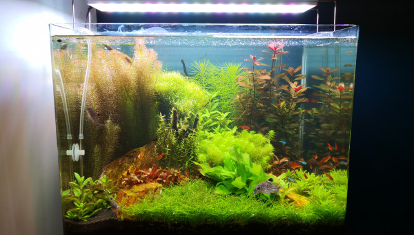 Bonjour à tous, 9 années d'aquariophilie avec 2 bacs précédents plutôt orientés lowtech (60 et 54l) dans lesquels j'ai maintenu le même groupe de poissons (à peu près), j'ai toujours eu envie de me lancer dans l'aquarium planté voir très planté