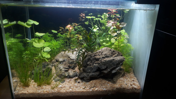 Je relance ce petit aquarium en mode lowtech, inspiré par la méthode Walstad, les conseils de FatherFish et Fishstory sur youtube et les concepts de base de l'aquascaping.