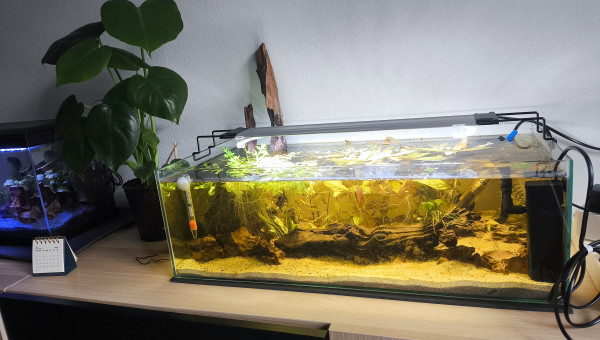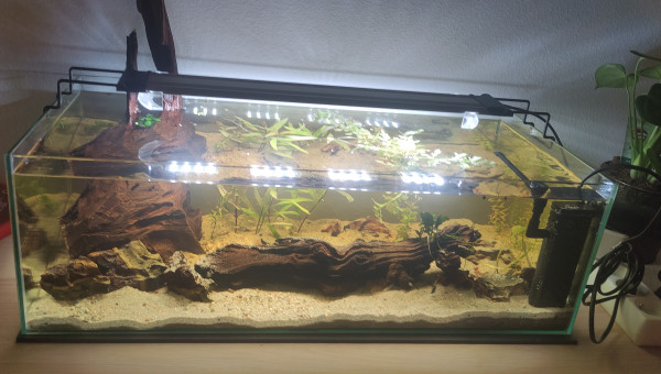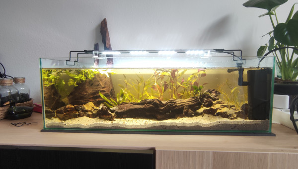 Le bac est prévu pour le transfert de mes neocaridinas et de mes boraras brigittae (60 cm de façade).