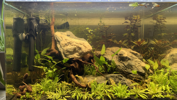 Scaper tank dennerle de 35l avec décors en seiryu stone. A la base c'était pour des crevettes, ça s'est très mal passé, du coup c'est devenu le bac du betta que mon fils a choisir. C'est donc désormais la demeuse de Éclair !