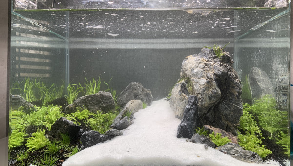Réfection totale du bac, nettoyage du bac, des roches, changement de « philosophie » adieu sol technique et retour au substrat et sol neutre.