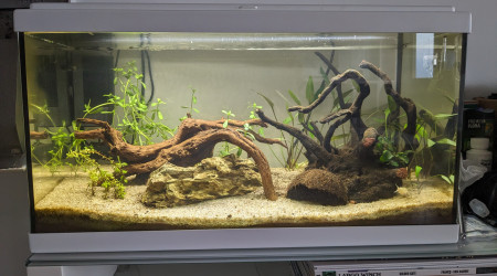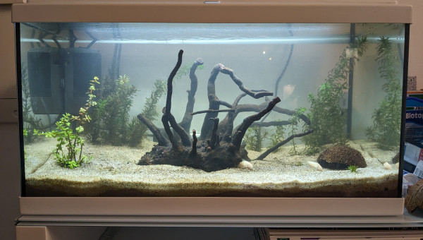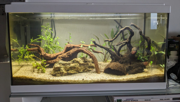 Un "essai" afin d'estimer si l'aquariophilie me plairait suffisamment pour aller vers un 200-300L décoratif (avec des pensionnaires bien lotis !)