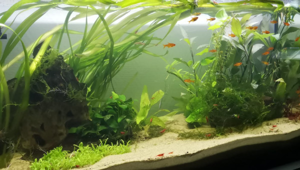 Et voilà tout ce petit monde a été transféré dans leur nouveau bac, une vraie galère mais enfin fini! J'ai une petite pompe interne de 450l/h, je ne peux y rentrer que la moitié d'une masse filtrante très peur que ça ne suffise pas, on va voir... A terme j'aimerais rajouter des corydoras hastatus, à voir si ça ne fait pas trop