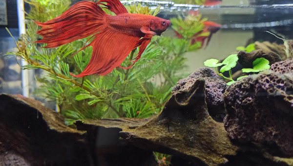 Bienvenue a ce nouveau betta . Il me faisait de la peine en jardinerie. Son pote était en train d'agoniser dans son verre d'eau. Vu qu'il était en promo j'ai décidé de le sauver lui ?. N'ayant jamais eu de combattant je ne sais pas si ça nageoires est belle, bien formée, si il est beau et en santé de manière général? Ça fait donc 4 semaines que je l'ai mis dans mon Aqua 'alavavite'. Et Mr fait même ses nids de bulles. Toujours caché pendant 10jours, maintenant il viens effleurer les mains, manger au bout des doigts, curieux et pas craintif.. Je suis surpris, est ce un comportement propre aux combattants ? (Cet aquarium a une paroie miroir au fond, ça n'as pas l'air de le déranger)