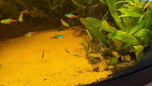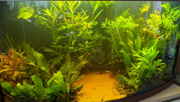 Aquarium de type amazonien, sans filtration, addition CO2, sur tourbe.