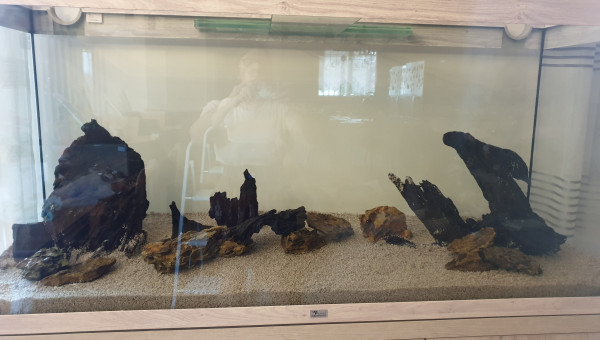 Pic nitrites atteint il y a 1 semaine' taux en diminution, test tous les 2 jours. Retrait du charbon actif le 14/01, eau troublée, snif Présence d'algues, retirées régulièrement. Sont en faible quantité. Mise en place de la seconde racine de mangrove le 08/01, maintenue par des pierres car flotte encore!