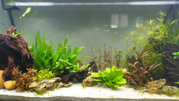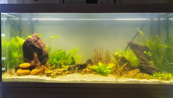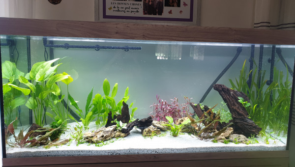 Bloom bactérien terminé remise en route du CO2 pour baisser un peu le Ph et pour le bien être des plantes transfert des poissons du 180l vers le 450l