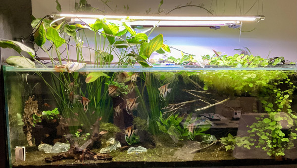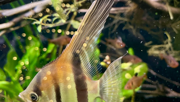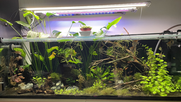 Ajout hier soir d’un banc de 20 tétras joyaux (je me tâte à en mettre plus d’ailleurs) et de 6 otocinclus (pour le moment, j’en ajouterai plus tard). Tout le monde va bien, les tétras se sont jetés sur les paillettes ce matin et les otocinclus m’ont déjà récuré une plante.