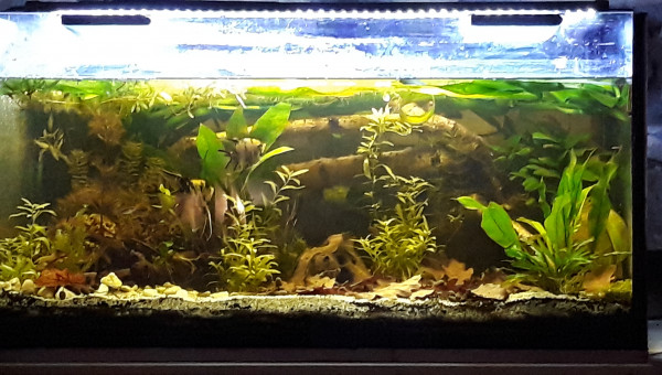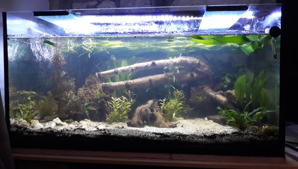 Futur amazonien, démarré ce lundi avec masses filtrantes de mon 80l replacées dans le filtre et plantes venant d'un autre amazonien.