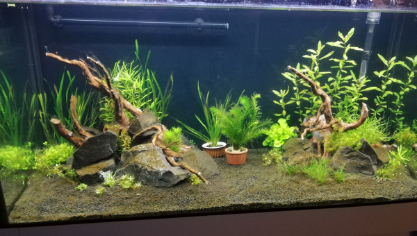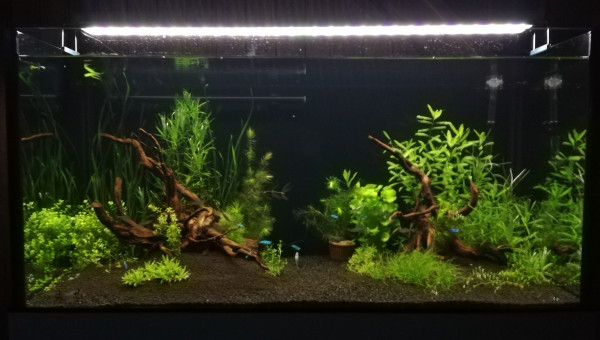 Augmentation CO2 de 9h30 à 14h et de 16h à 20h30 Diminution brassage Ajout 2 plantes à croissance rapide Eclairage à 30% de puissance: de 10h30 à 15h et de 17h à 21h30