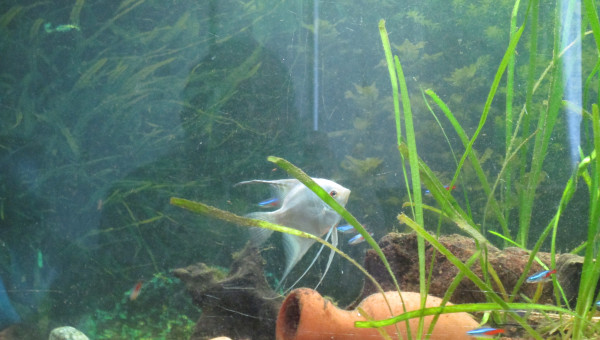 Simple et empirique . Aprés quelques décennies d’errements . Un scalaire , une dizaine de néons, 6 corydoras dont deux issus de reproduction , un ancistrus mâle. Pour les plantes, des rejets et repousses décennales d'Asie : Crinum Natans et Cryptocoryne balansae , ( un mystère!). Cet aquarium a subit 3 déménagements , sa réinstallation date du 28/12/2018.