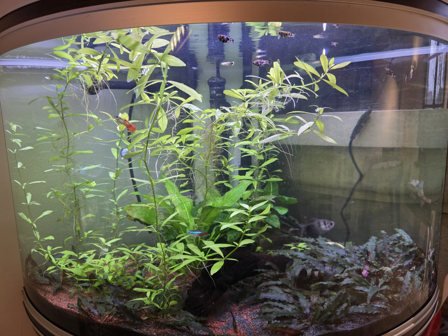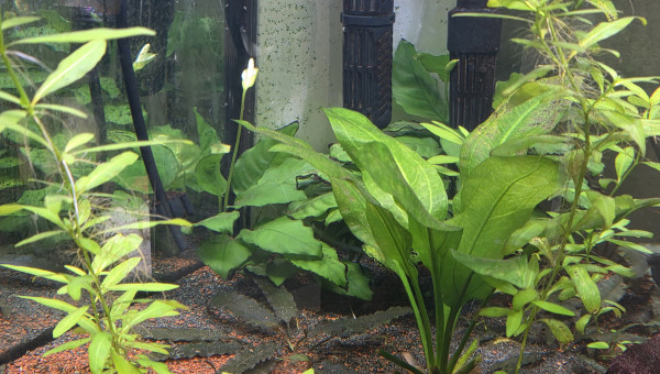 Reprise du bac suite à un gros soucis de qualité d'eau, Les plantes commencent à reprendre de la pousse et 2 fleurs anubias arrivent