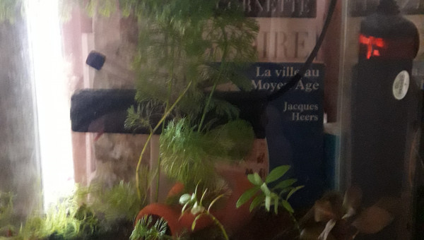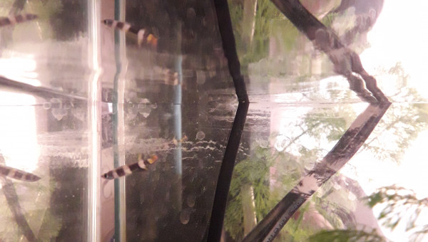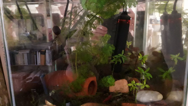 Après mort de la Betta femelle. Introduction de 3 epiplatys annulatus puis un mois plus tard de 5 neocaridinas sakuras.