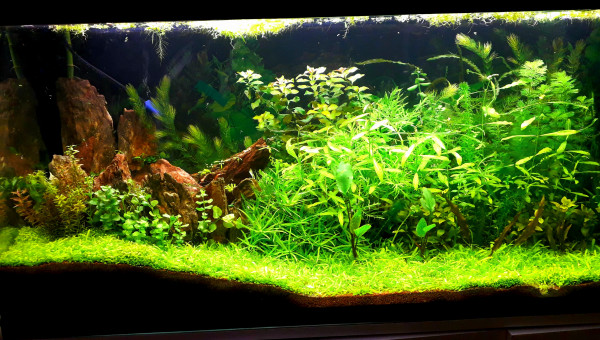 Aquarium mis en eau le 20 janvier 2018. Pour le moment aucune population . Eau du robinet à 85 % et 15 d'eau osmozeé . Apport en co2 depuis de 15 février