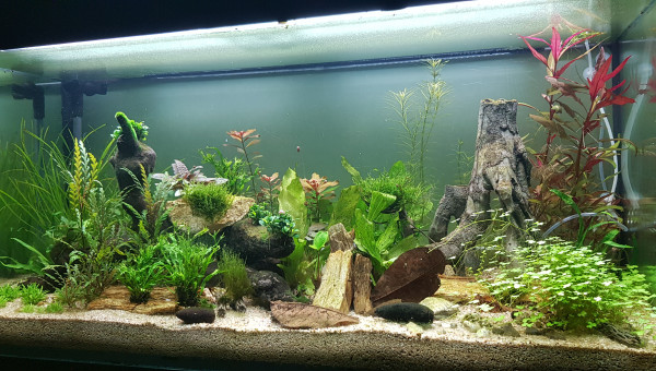 En attente de sa population. Pour l'instant seules quelques crevettes bambou et sakura red ainsi que des planorbes habitent ce bac.