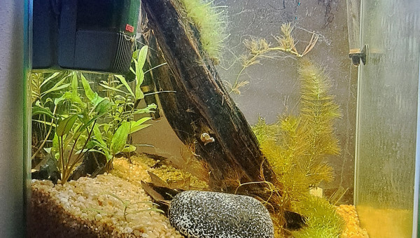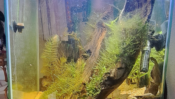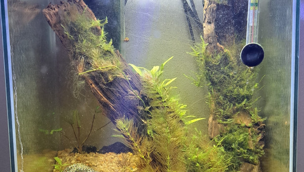 Grâce à un membre du groupe très attentionné (qui se reconnaîtra si il passe par là) j'ai pu commencer cet aquarium en temps que novice en crevette blue velvet. Encore une semaine de patience avant de les introduire !