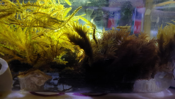 Cest un bac dédié uniquement à tout genre de mousse terrestre. Misent en eau mi-juillet 2019. J'ai ajouté des cailloux et une ou deux coquille de palourde. L' eau est tres claire. Aucune algue sur les parois. Les mousses du dessous de couleur sombre date du mois de juin 2019 qui se trouvait dans un autre bac. Malgré sa couleur sombre, elle garde encore quelques parties qui reste encore verte (couleur d'origine). J'essaie de savoir si ces mousses une fois dans l'eau en permanence contribue a filtration. Car jusqu'à ce jour et ce depuis pres de deux mois, l'eau n'a pas été perturbée ni voilée.