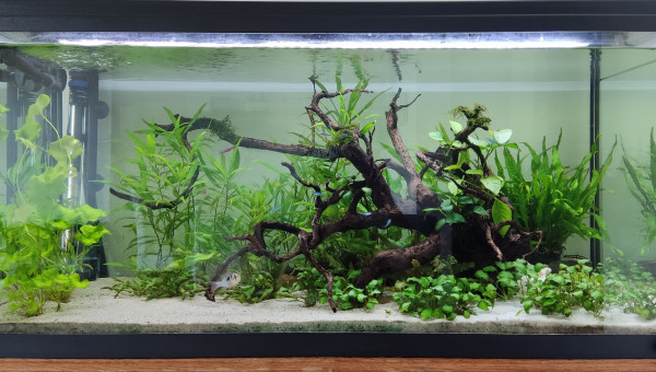 Animaux: 19 cardinalis, 10 guppy endler, 6 corydoras trillineatus, 8 caridina multidentata, 3 pangio kuhlii, 2 trichogaster china.