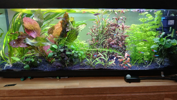 objectifs 1 - passer de 24°C à 23°C pour l'élodée commune et les néons bleus 2 - changement filtre interne à externe Oase 3 - diminution du PH en diminuant le kh de 7 à 5 par renouvellement d'eau osmosée seule, objectifs améliorer l’absorption et éviter un précipité des nutriments chélatés par EDTA