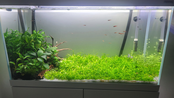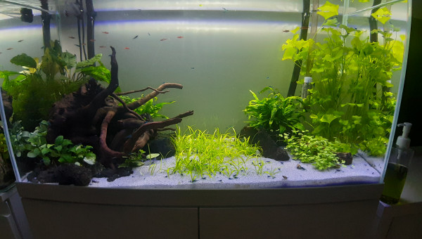 aquarium 120l aquael optiwhite blue velvet et boraras brigittae