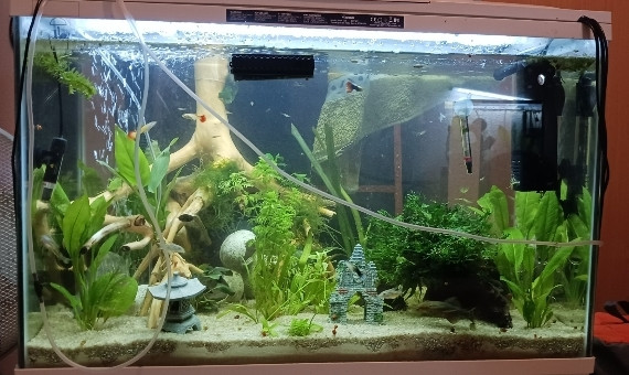 Aquarium 150l Poissons: .guppy .platy .molly .Corydoras .Ancistrus Crevette