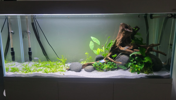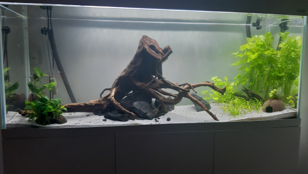 Aquarium 240l Aquael Optiwhite Simulans ramirezi et ancistrus snow white long fin