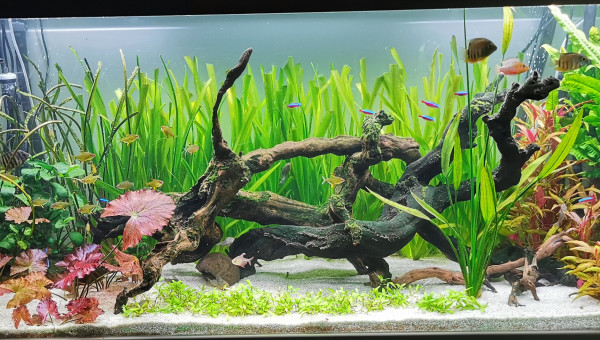 Aquarium biotope Amazonie. Discus, Apistogramma, Cardinalis, Corydoras...