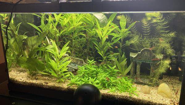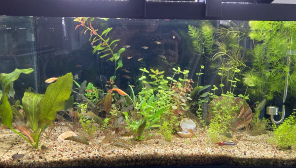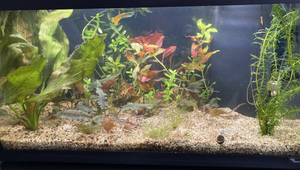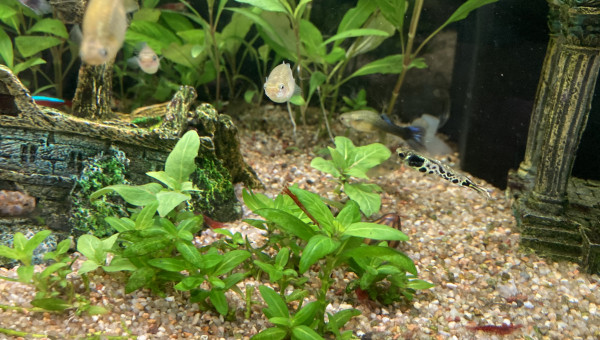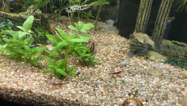 Nage irrégulière d'un Cardinalis Nage la tête en bas de deux femelles guppy enceintes.
