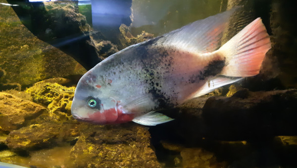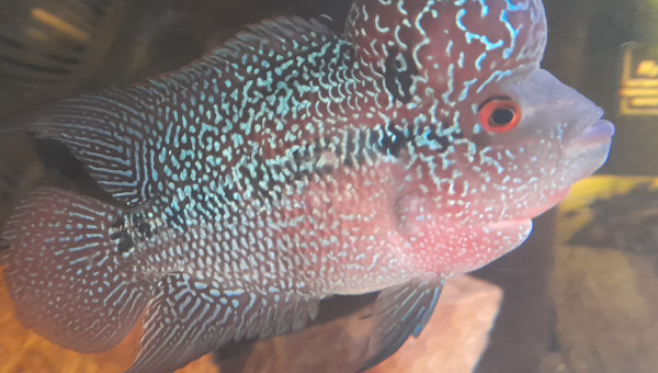 Grands Cichlidé d’Amérique qui a un caractère bien trempé, ne le maintenir que dans de grands bacs avec des poissons ayant du répondant. Patrons de couleur à dominante bleue (gorge, queue et pointe nageoire dorsale rouges), avec une barre noire et large en plein milieu du corps. Poisson réputé plutôt rare en dehors de la communauté sur le marché aquariophile. 2 poissons dans mon 600 litres