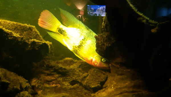 aquarium de cichlidés américain et Malawi. type de cichlidés: Héros Metriaclima estherae femelle et mâle. Vieja maculicauda. Tilapia buttikoferi. Charas batrachus (silure grenouille) Red parrot.