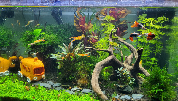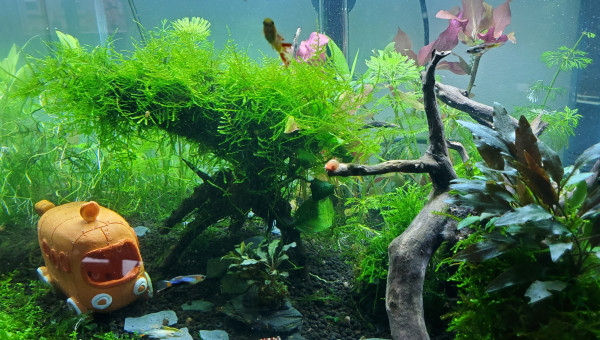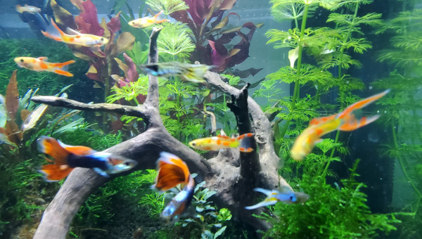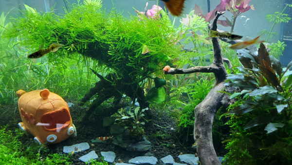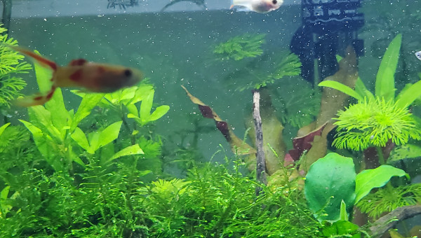 Un petit coquin se faisait passer pour une femelle dans mon bac femelles endler Il n'avait pas développé les couleurs comme les autres mâles de la portée : fond jaune et grosses taches Oranges avec qq traits verts et bleus qui définissent les mâles à contrario de mes femelles bien jaunes crème uni. J'ai remarqué qu'une de mes jeunes "femelle" pourtant blanc crème avait des traits très fins orange et vert sur la queue Et hier j'ai bien vu qu'elle tournait un peu trop autour de ses sœurs ? Aujourd'hui transfert de mon jeune transformiste dans le bac des mâles. Les autres mâles ne lui courent pas du tout après ce qui confirme bien qu'il s'agit d'un mâle. Il espérait peut être se faire discret pour pouvoir bénéficier du harem pour lui tout seul ?? Ou alors une sorte d albinos ?